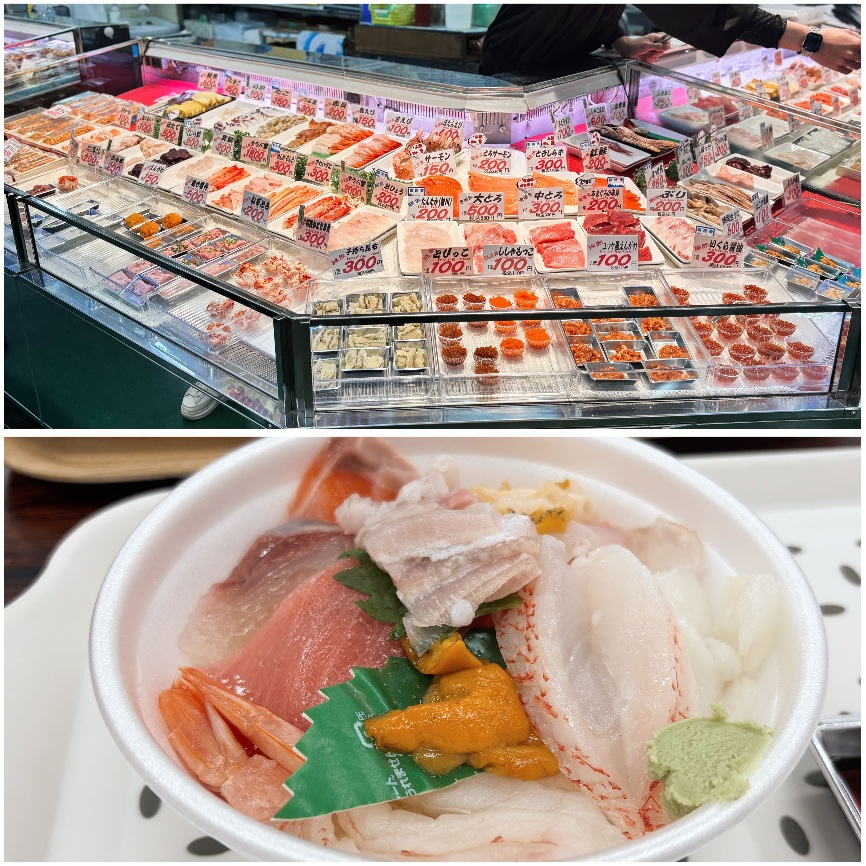 市場で好きな具材を選んで、自分だけのオリジナル海鮮丼を作るスタイルです🐟